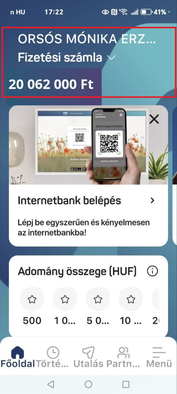 - szerepel egy „sikeres utalás” húsz millió,- forintról,