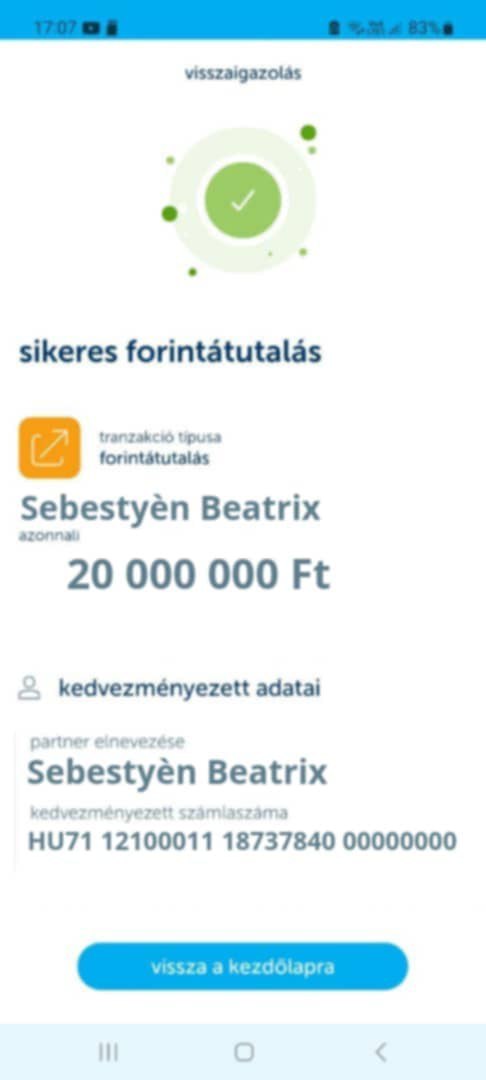 - szerepel egy „sikeres utalás” húsz millió,- forintról,